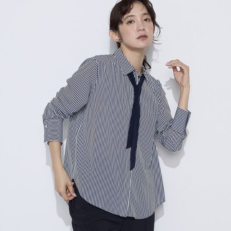 コムサ定番の、ボウタイ付きストライプシャツです。