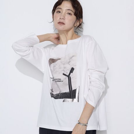 モード感のあるモノトーンの風景プリントを施したTシャツです。