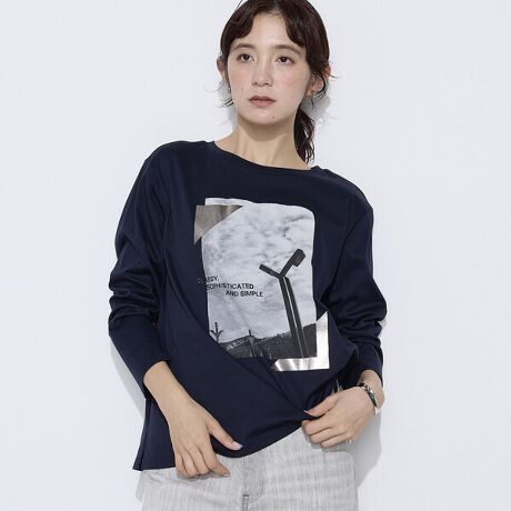 モード感のあるモノトーンの風景プリントを施したTシャツです。