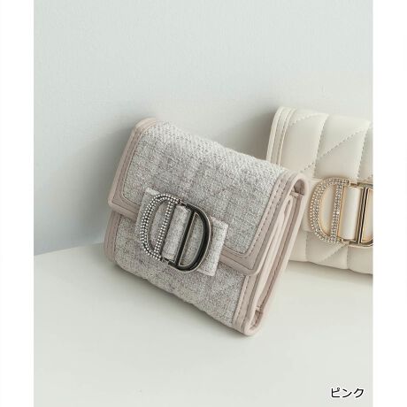 <26春夏新作>ビジューパーツキルティング三つ折りウォレット