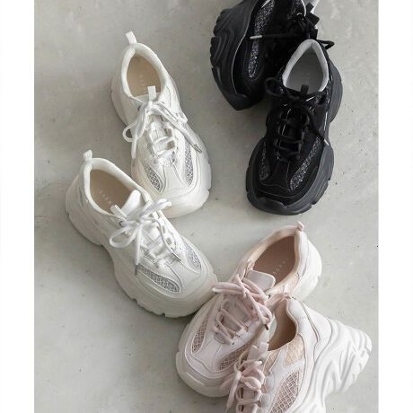 上品なレースxスムース素材を組み合わせたスニーカー。