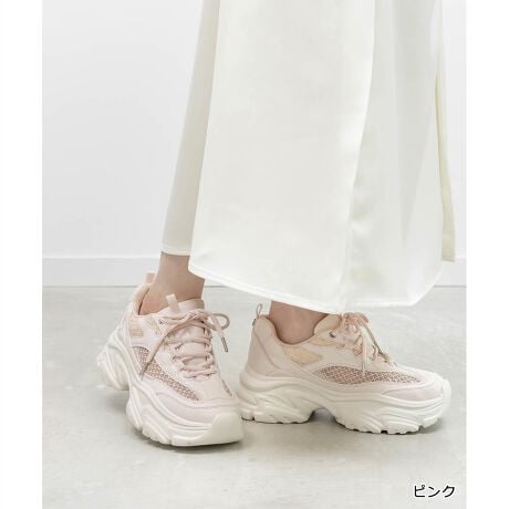 上品なレースxスムース素材を組み合わせたスニーカー。