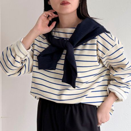 抜け感たっぷりなニットソーボーダープルオーバー