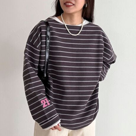 抜け感たっぷりなニットソーボーダープルオーバー
