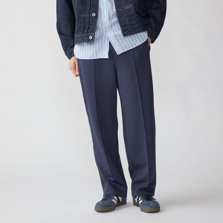 スラックスと同様の製法でつくったSHIPSが提案するラインジャージパンツ。