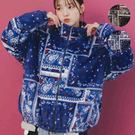 トレンドのバンダナ柄をモチーフにした、こなれ感たっぷりのあったかブルゾン。
