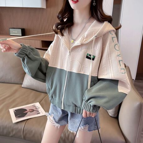 -韓国風バイカラーパーカーで旬のストリートスタイルに