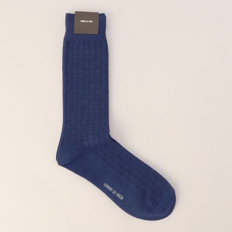 [型番:07-54QO05-206]《デザイン》弓矢をモチーフにした伝統的な模様、ヤガスリ柄のソックスです。濃淡のある同系色の配色にすることにより、落ち着いた色合いで合わせやすいソックスに仕上がっています。縁起の良い柄なので、ギフトにもおすすめです。《素材》発色の良い綿アクリル糸をベースに使用し裏糸やリブ裏に程よいテンションの、ポリウレタン糸を使用しています。