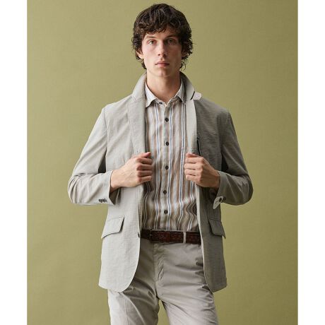 驚くような薄さでありながらハイパワーストレッチ性を兼ね備えた軽量素材です。生地表面に表情が出るよう、細かなピケ調の組織で表現され、サラッとした風合いが特徴のJOSEPH ABBOUDオリジナル素材です。