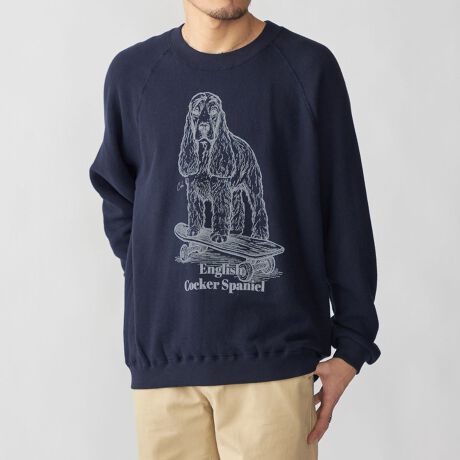 ドッグプリントが目を惹くデザインで1枚着でも、アウターからプリントを覗かせてもコーディネートが映える1枚です。