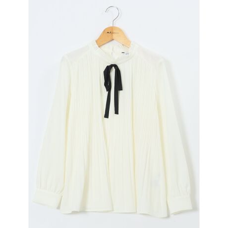 前身プリーツ リボン 長袖プルオーバーブラウス