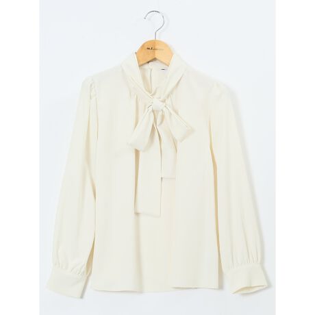 お顔まわりを華やかに演出してくれる、長袖のプルオーバーブラウスです。首回りのプチハイネック、取り外しが可能なリボンタイ、袖口のカフス、背中の涙開きがポイント。キチンと感のあるクリーンなルックスなのでオンオフ兼用で大活躍してくれます。