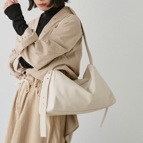 柔らかなレザーの落ち感を活かし、持ち方や荷物量によって表情が変わる一品です。