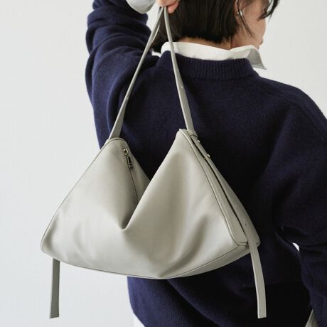 ベーシックな佇まいに、三角形のラインがさりげない個性を添えるショルダーバッグ。