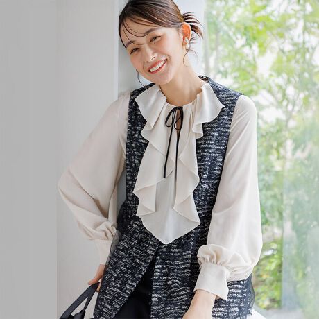 卒入学式などのセレモニーシーンはもちろん、オフィスなどデイリーにも着こなせるオシャレなジレ。