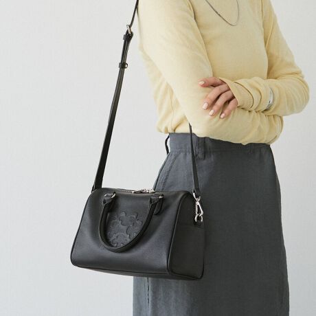 シボ感のあるソフトレザーを使用した、上品さと軽やかさを併せ持つミニボストンバッグ。