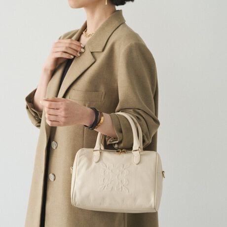 シボ感のあるソフトレザーを使用した、上品さと軽やかさを併せ持つミニボストンバッグ。