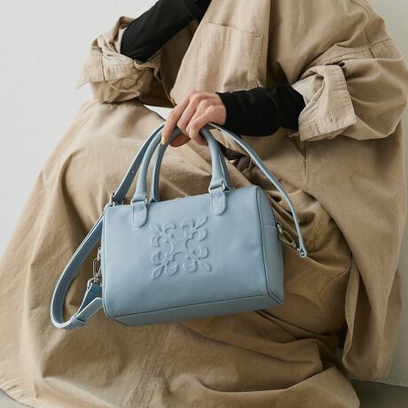 シボ感のあるソフトレザーを使用した、上品さと軽やかさを併せ持つミニボストンバッグ。