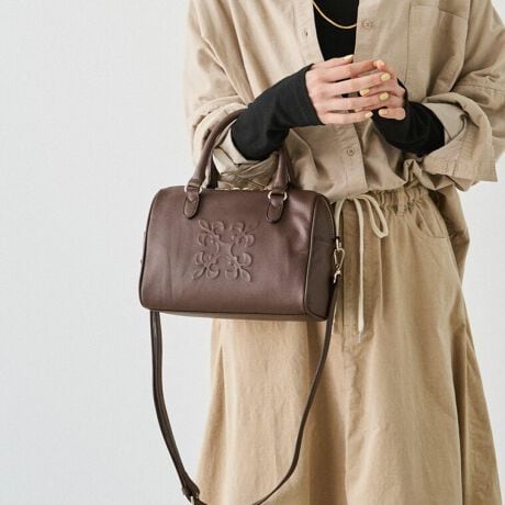 シボ感のあるソフトレザーを使用した、上品さと軽やかさを併せ持つミニボストンバッグ。
