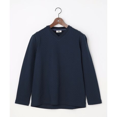 着こなしを選ばない小格子柄を、立体感のあるリンクス編みで丁寧に表現しました。衿部分は本体と同色のニットパーツで仕上げることで、ジャケットのインナーとしても遜色のない、洗練された上品な印象を与えます。#003はTOPメランジグレー、#074はかすり調のTOPメランジブルーです。