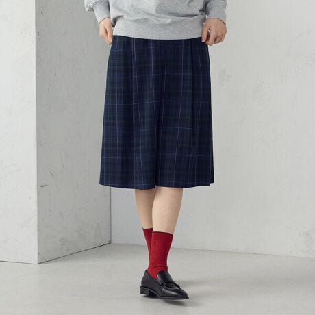 オリジナルのブラックウォッチ柄で仕立てた、ひざ丈スカート。
