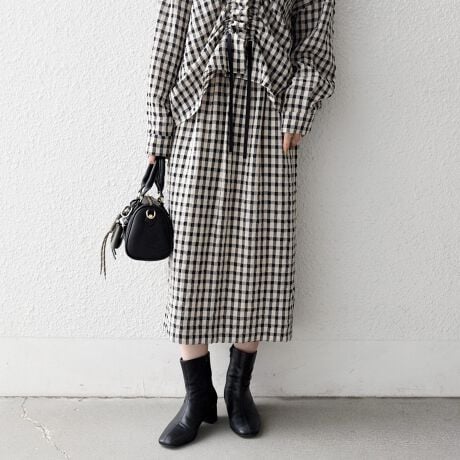 落ち着いたトーンのギンガムチェックで、大人のデイリーにも取り入れやすいスカート。