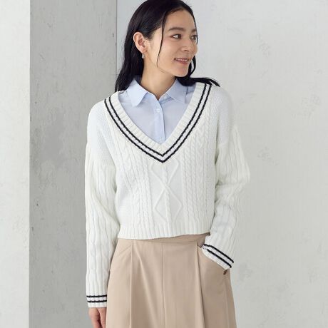 深めのVネックが、抜け感のあるすっきりとした印象に仕上がります。