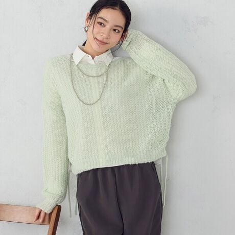 女性らしい印象に仕上がるニットです。