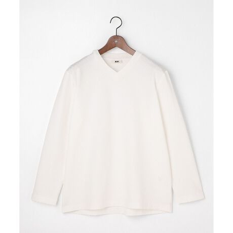一枚でさらりと着ても上品に決まります。ジャケットやカーディガンのインナーとしても最適で、ビジネスカジュアルからきれいめな休日スタイルまで幅広く対応します。デニムやチノパンでカジュアルダウンしても、品の良い大人の装いを演出できます。