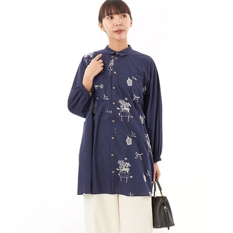SUPER HAKKA×マツモトヨーコ 「大切にしていること」単色刺繍チュニックブラウス