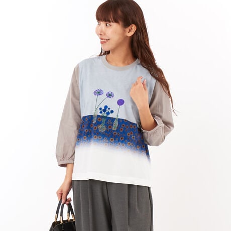 袖には布帛を使用し、1枚でデザイン性を感じられるカットソーに仕上げています。