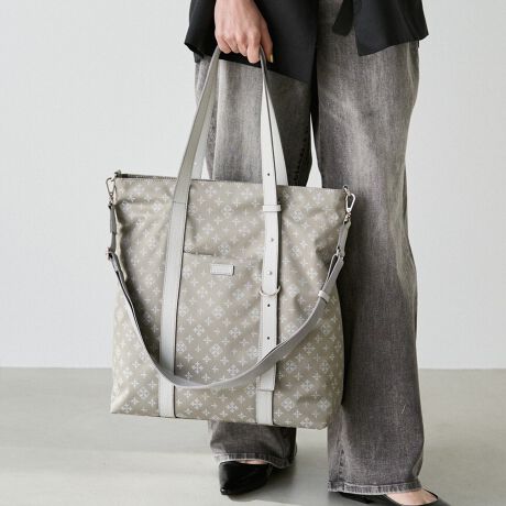 ライトグレー・エクリュ・ネイビーは、ナイロンジャガードのモノグラム柄がさりげなく浮かび上がり、上品さの中に表情をプラスします。