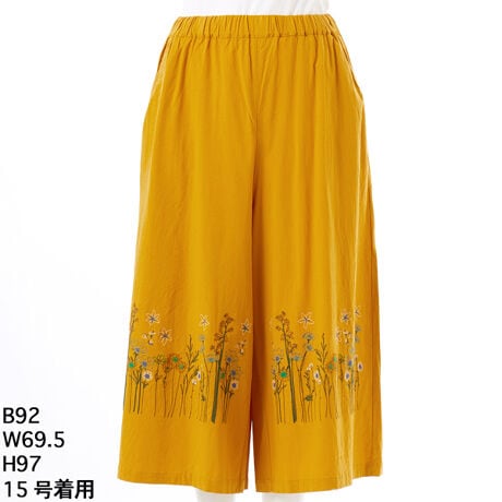 [15〜19号]セルロースコットンストレッチ ステムペタルスケッチ刺繍ワイドパンツ