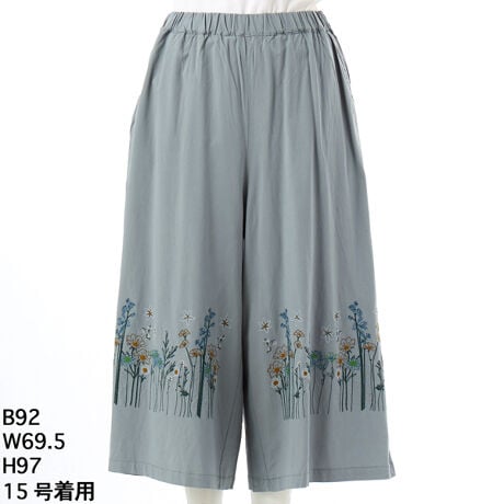 [15〜19号]セルロースコットンストレッチ ステムペタルスケッチ刺繍ワイドパンツ
