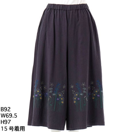 [15〜19号]セルロースコットンストレッチ ステムペタルスケッチ刺繍ワイドパンツ