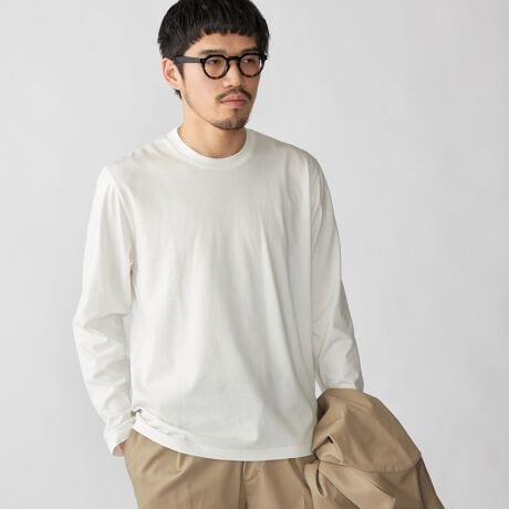 シルケット加工を施し、サラっとした肌触りを実現したジャケットのインナーに最適なクルーネックロングスリーブ