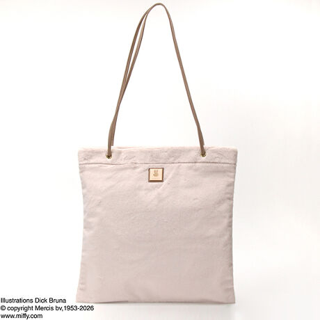 [型番:6093]ふわふわの手触りが気持ちいいミッフィーのトートバッグ。バッグ前面にはミッフィーのお顔とロゴ文字のプレートが付いています。デザインだけでなく、実用性も抜群。A4サイズが入る大きさで、肩に掛けやすいよう長めに設計された持ち手に、開口部は片手で簡単に開閉できるマグネットボタン仕様。内装には小物を収納できるファスナーポケット付き。しかも、そのファスナーポケットのファスナートップはミッフィーのお顔の形をしていて可愛い!
