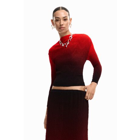 長袖トップス、レギュラーフィット、丸首、テクスチャ付きプリント、グラデーションカラーのデザイン。