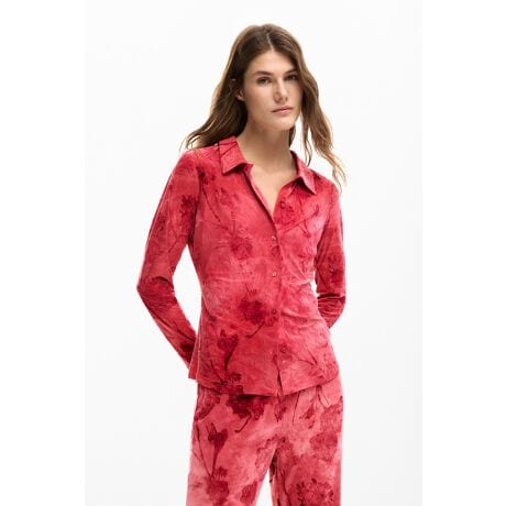 レギュラーフィットの長袖Tシャツ、ネックラインにギャザーのディテールと花柄プリント付き。