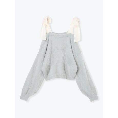 [型番:25550724436]ふんわりとしたフェザー調素材に肩のシアーリボンがアクセントを添えるニットトップス。すっきりとした首元と立体感のある袖が、全体をバランスよくまとめます。デニムでカジュアルに、スカートでフェミニンにと、気分に合わせた着こなしが楽しめます。モデル(アイボリー着用)身長:167cm Mサイズ着用