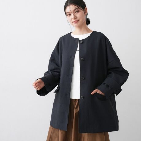 クルーネックとワイドシルエットがポイントの、トレンド感とキレイめのバランスがとれたデザインコートです。