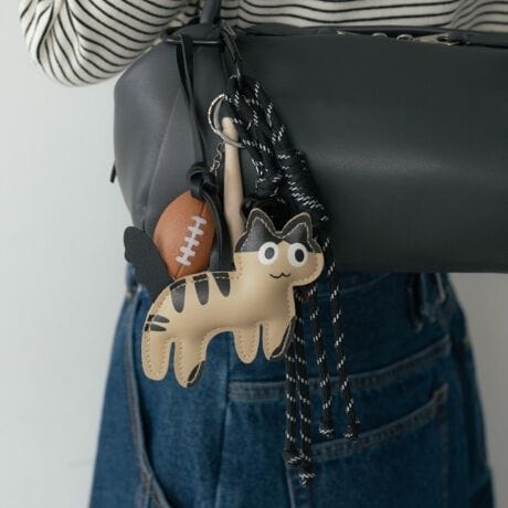 [型番:52305035]Design Point可愛らしい猫とラグビーボールのチャームが特徴的。遊び心満載なデザインは、バッグやポーチに付けるだけで個性を引き立てます。猫の表情が愛くるしく、温かみを感じるビジュアルで、どんなスタイルにもマッチします。※照明の関係により、実際よりも色味が違って見える場合があります。また、パソコン・スマートフォンなどの環境により、若干製品と画像のカラーが異なる場合もございます。