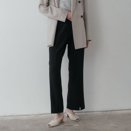 センタープレスですっきり見せ、スリット入りの裾デザインが軽やかさを演出。