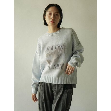 存在感のあるフォトロゴデザインが目を惹くニットプルオーバー。