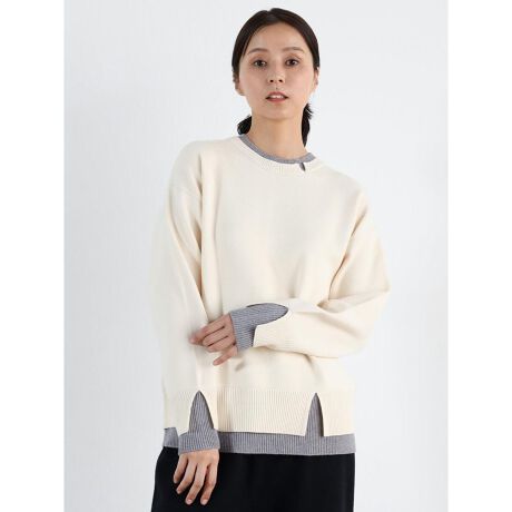 ・2枚のニットをレイヤードしたようでデザインが特徴。シンプルなデザインながらも着映えします。