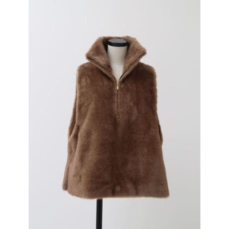 一着でサマ見えする存在感のあるファーベスト。首元に施されたジップデザインによって抜け感のあるスタイルにもハイネックにもアレンジが可能。計算されたボリュームシルエットは、着膨れを防ぎながらも美しい落ち感を保ちます。いつものスタイルにプラスするだけで、シーズンムードがぐっと高まる逸品です。