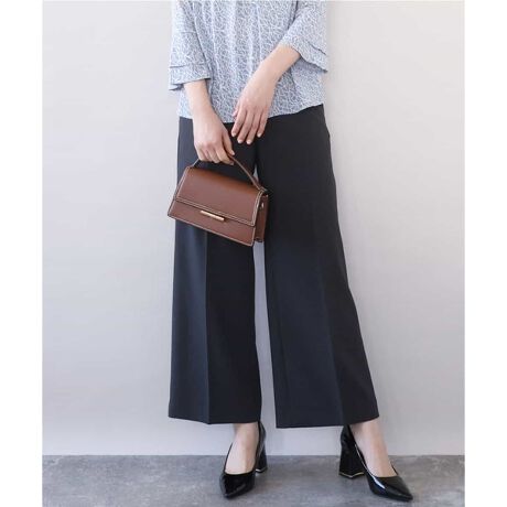 すっきりとしたシルエットがきれい見えのブランド定番人気のワイドパンツ。人間が立った状態の脚の形状に近い特別なボディーを使用しパターンを起こしているため、ヒップのトップ位置が高くヒップアップ効果があり、ストンと真直ぐ落ちるワイドシルエットが気になる太もも周りをカバーし、脚をまっすぐ長く見せてくれます。フロントのホックは可動式で1.5cm動き、後ろのウエストゴム仕様と合わせてストレスフリーな履き心地を実現。