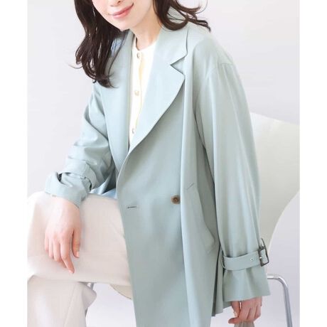 ゆったりとしたデザインに短めの着丈がバランス良く着こなせるショートトレンチコート。やわらかな素材なのでゆったりシルエットもこなれ感のある着こなしに。
