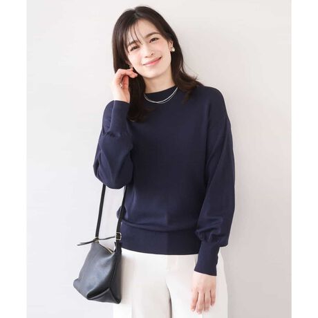 ハイネックのデザインがレディライクでクラシカルな印象のニット。体のラインを拾わないサイズ感ながらも、袖口の長めのリブデザインですっきり見えがかないます。