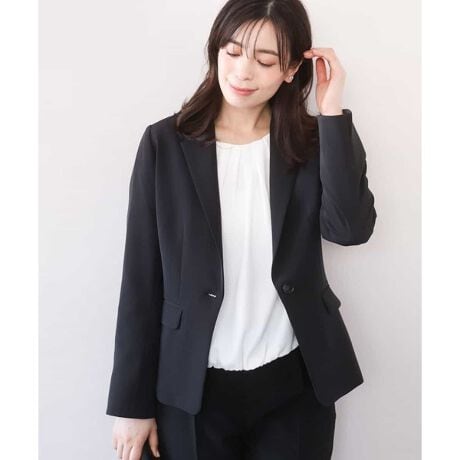 着心地の良いベーシックなテーラードジャケット。シルエット、着丈はすっきりと着られる女性らしい印象に。長く着用できるようにシンプルに仕上げました。